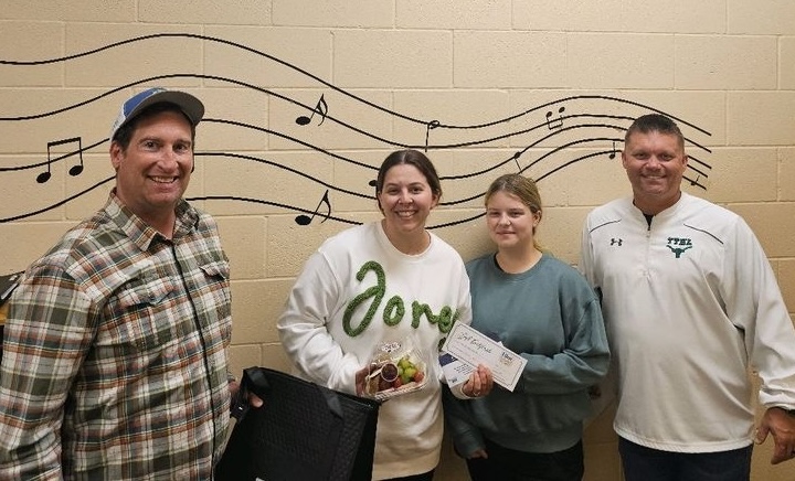 High School Winner – Allison Johnson. Pictured with Kiwanian Dustin Wilson, Lucy Stanolis, nominator and Mike Watkins, Principal
